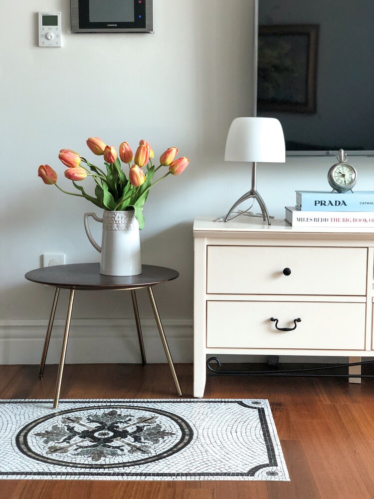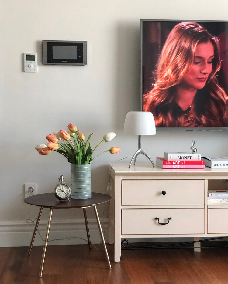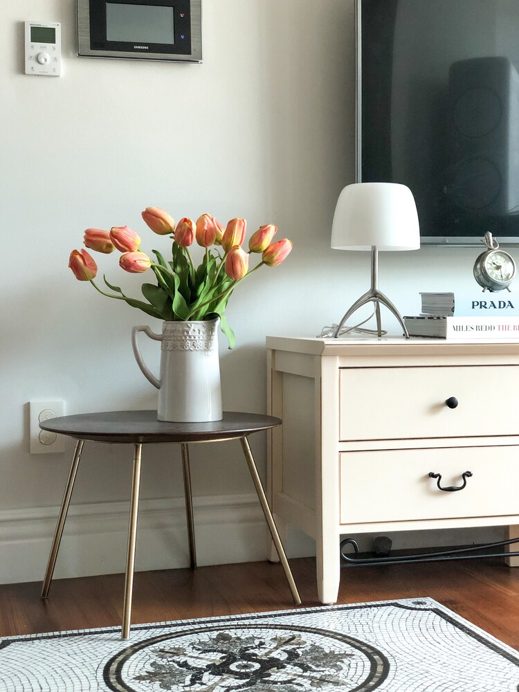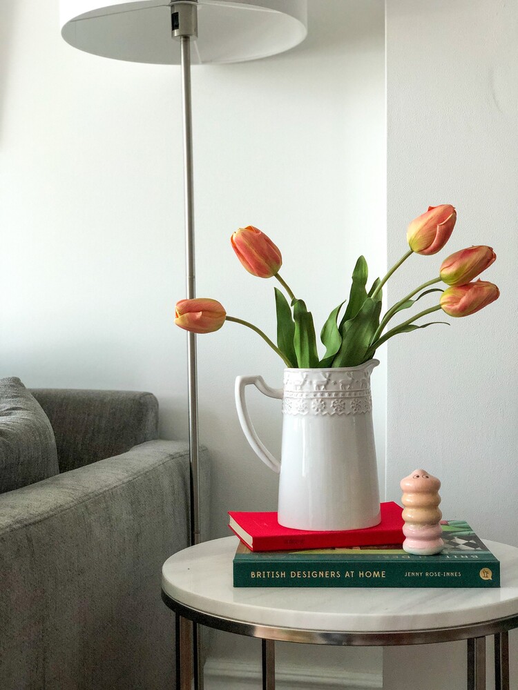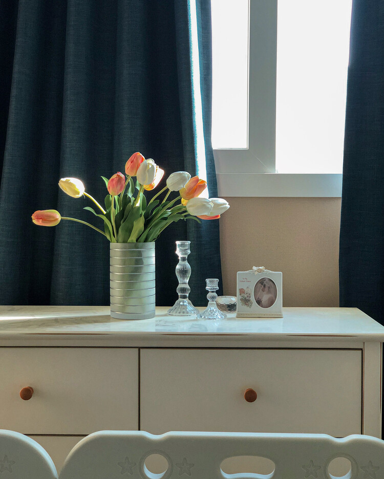 * 높이 20cm, 지름 12cm 화병에 총 12송이 스타일링한 모습입니다. 흰 튤립과 함께 연출하였어요.
