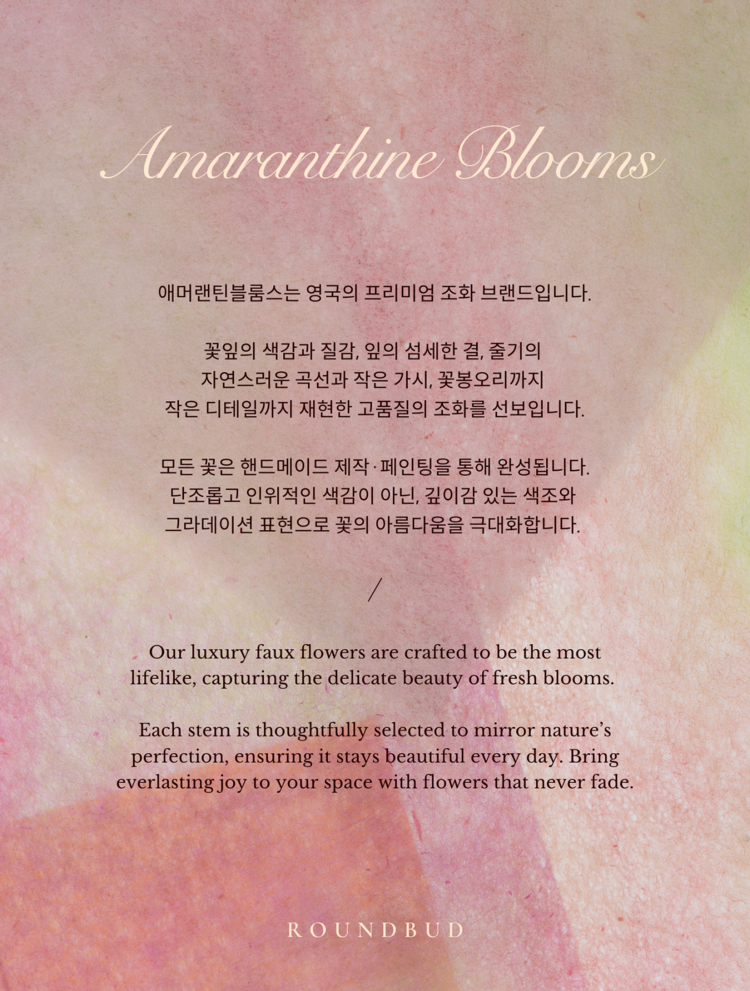 간혹 사진으로 볼 때와 실물이 다른 조화들이 있죠. 오래 두고 볼 조화를 고르실 때에는, 줄기의 디테일 또는 휘어짐이 자연스러운지, 꽃잎/잎사귀 사이즈가 생화와 비슷한지, 컬러가 자연스럽게 그라데이션 되어 있는지 등을 자세히 확인해 보세요.