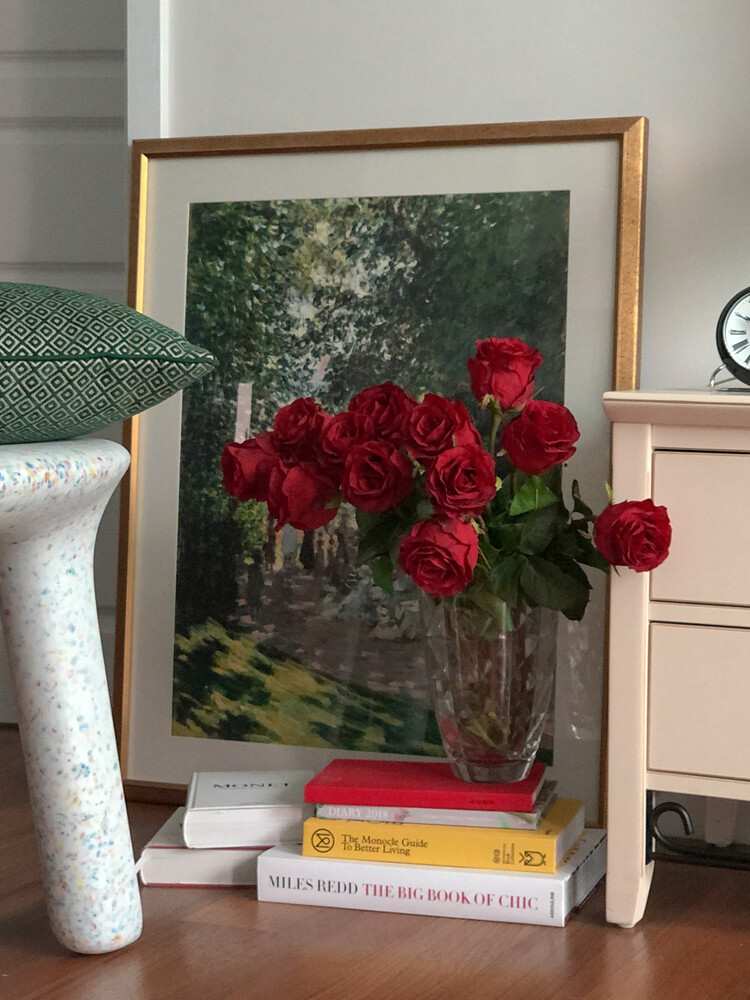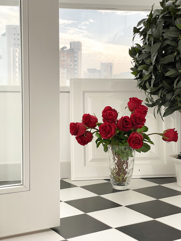 짙고 선명한 레드 컬러가 아주 매력적인 로즈버드 입니다. 만개한 장미와는 형태가 조금 다른 꽃봉오리 형태이지만, 꽃의 얼굴 크기는 작지 않은 편이에요. 이 브랜드의 장미는 정말 디테일이 살아있어요. 납작하고 커다란 잎이 풍성하게 달려 있고, 꽃잎의 자연스러운 주름과 꽃받침-줄기의 연결 부분, 심지어 가시까지 완벽합니다. 동글동글한 셰입 덕분에, 마냥 화려한 느낌보단 오히려 자연스럽고 사랑스러운 분위기로 즐기실 수 있을거예요. 가을/겨울 시즌- 클래식하면서도 고급스러운 연출을 원하시는 분들께 추천 드립니다.