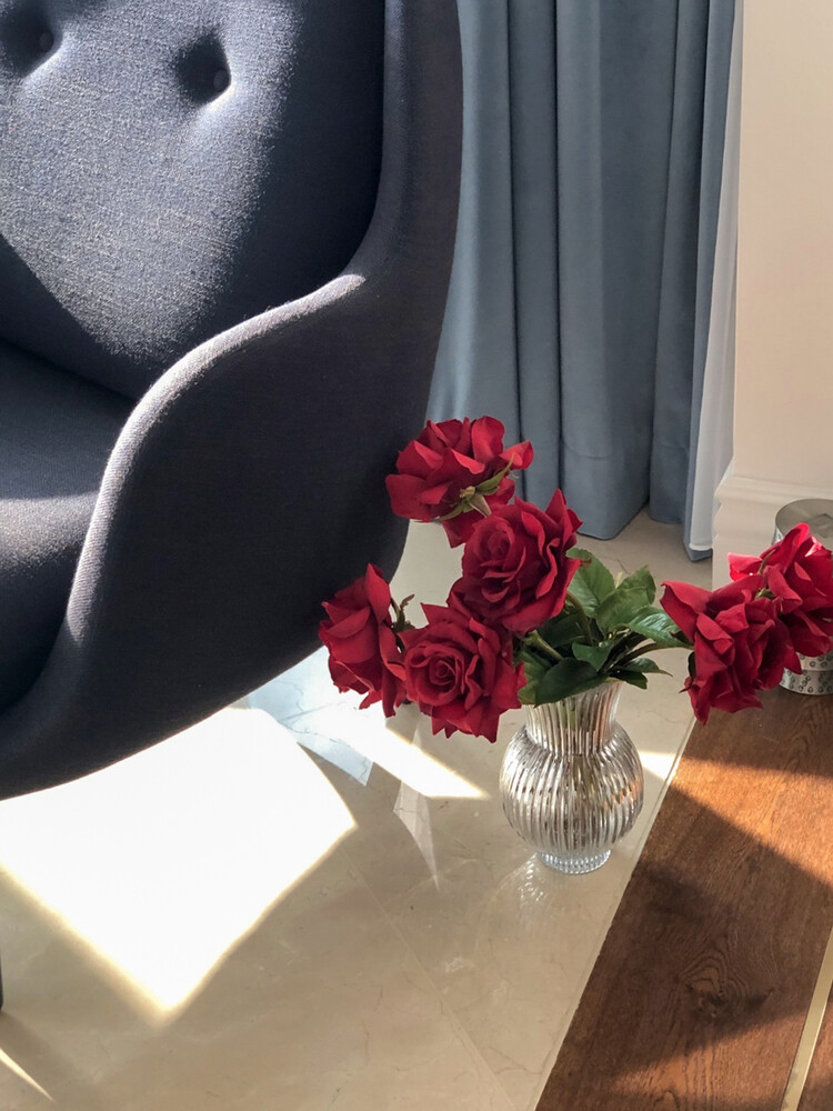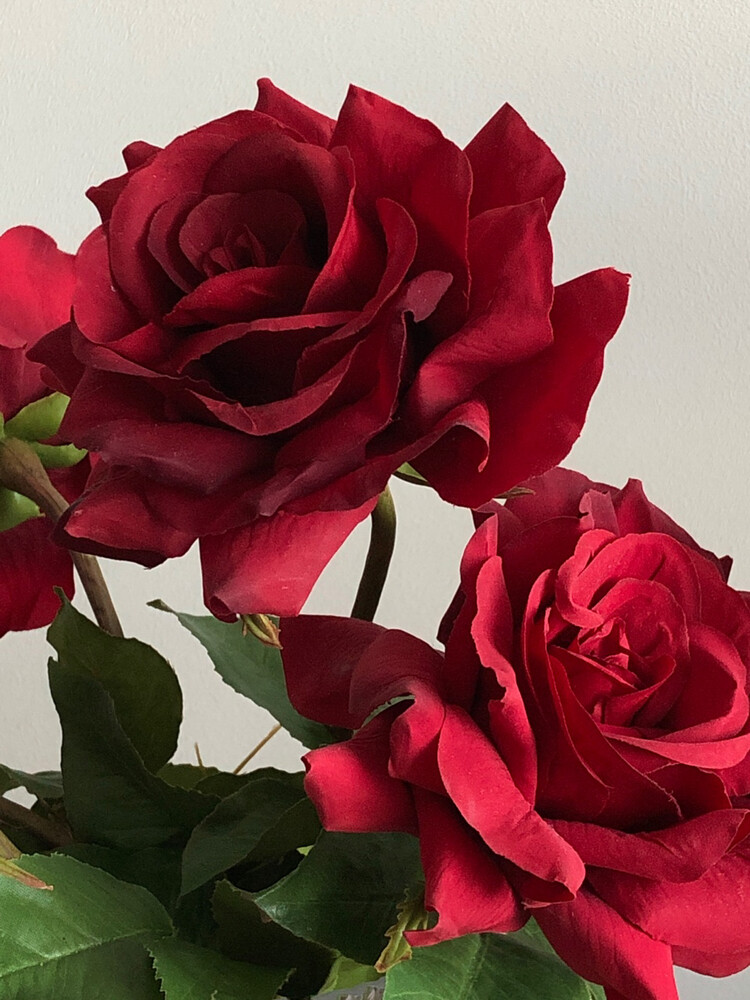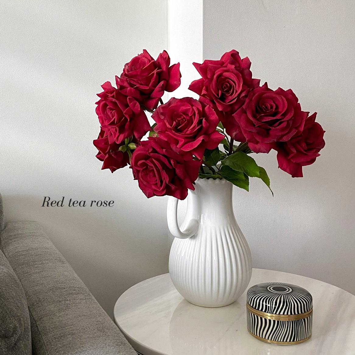 짙고 선명한 검붉은 컬러, 매트한 질감의 꽃잎으로 생화의 아름다움을 완벽하게 구현한 장미 조화입니다. 저희 꽃 상품 중, 실물 꽃과 가장 비슷하게 구현된 조화를 고르라면 이 레드 티 로즈일 거예요. 꽃잎의 매트한 질감과 얕은 주름, 살짝씩 무른 듯한 디테일까지 얼핏 보면 살아있는 꽃 같아요. 기존 판매했던 'Red rose bud' 보다 꽃얼굴이 더 크고, 만개한 형태의 장미입니다. 클래식하고 고급스러운 분위기의 홈스타일링을 원하시는 분들께 추천 드립니다.