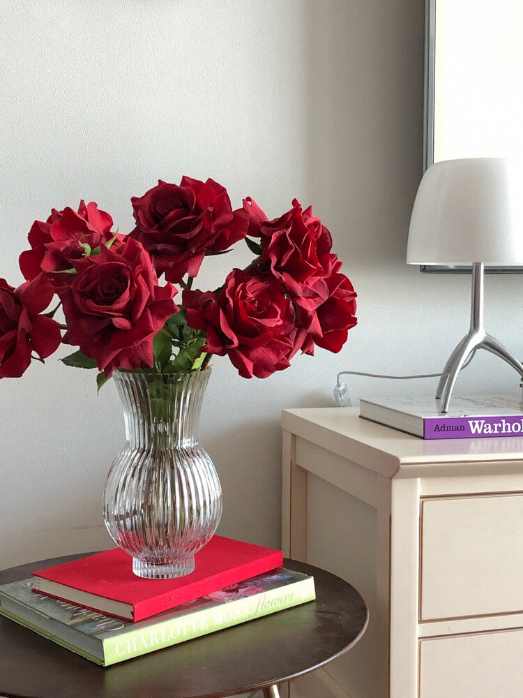 영국 Amaranthine Blooms (애머랜틴 블룸스) 사의 레드 컬러 장미(Hybrid tea rose) 조화입니다.