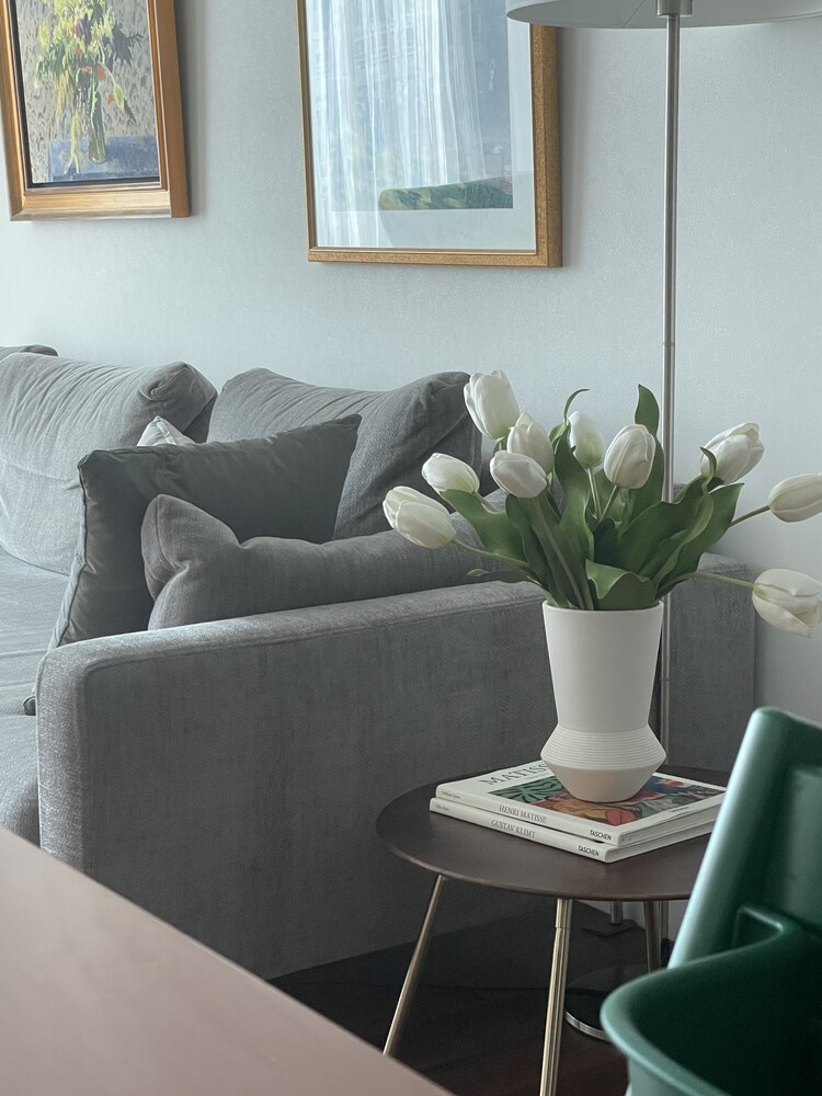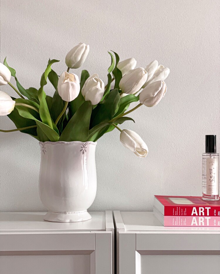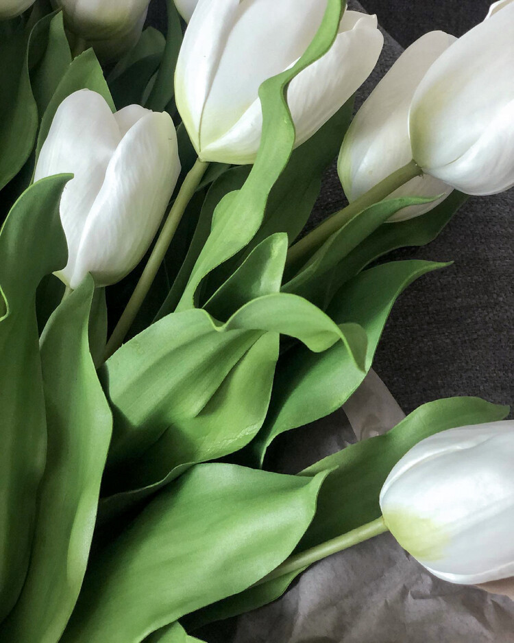 * 화이트 색상은 줄기의 전체 길이가 오렌지 튤립보다 짧고(하단 상세 사이즈 참고), 꽃잎이 벌어진 형태입니다.