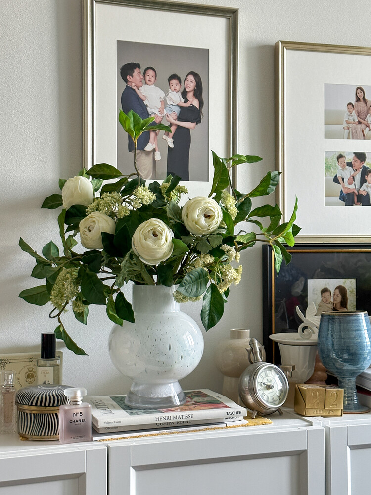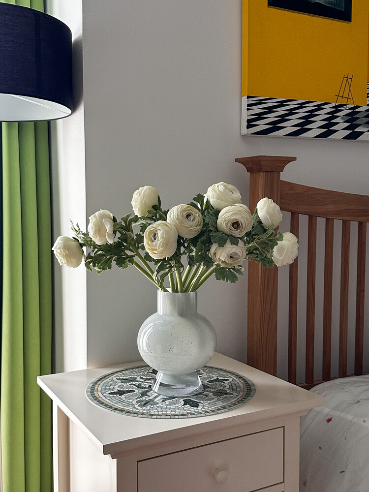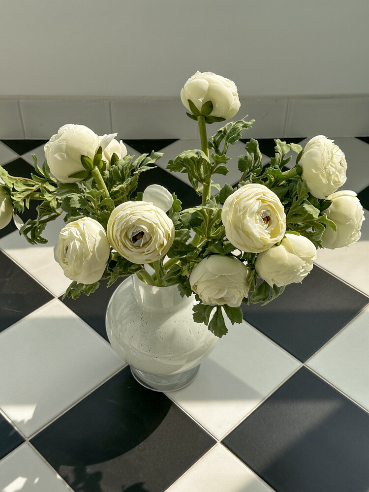 영국 Amaranthine Blooms (애머랜틴 블룸스) 사의 화이트 라넌큘러스 조화입니다.