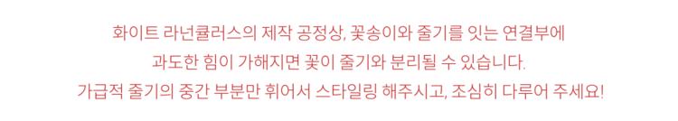 간혹 사진으로 볼 때와 실물이 다른 조화들이 있죠. 오래 두고 볼 조화를 고르실 때에는, 줄기의 디테일 또는 휘어짐이 자연스러운지, 꽃잎/잎사귀 사이즈가 생화와 비슷한지, 컬러가 자연스럽게 그라데이션 되어 있는지 등을 자세히 확인해 보세요.